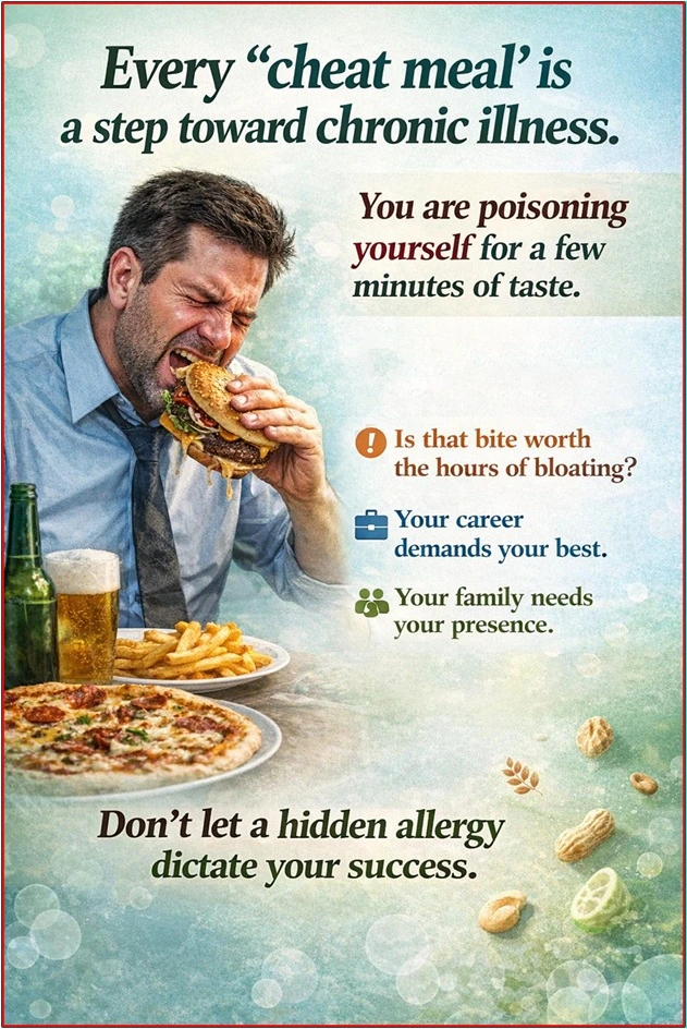 Food intolerance symptoms occur when your body lacks the enzymes needed to digest specific proteins. This leads to systemic inflammation and immediate digestive problems after meals. It triggers an immune response that drains your mental focus and physical strength.
